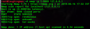 now what we want to get all the ports on a ip or server we use this command nmap -p 1-9999 127.0.0.1