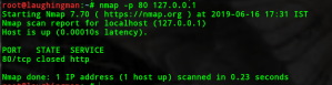 Right now lets move on to ways to find the ports we need so lets start by looking for a specific port this be port 80 so in terminal type nmap -p 80 127.0.0.1